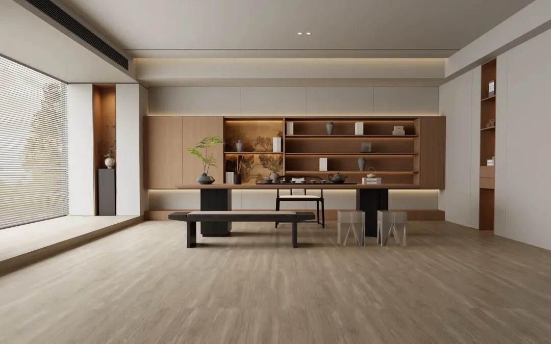 「安纳西木纹」系列高平整度叠加精准对位,实现近乎无缝的“无感”铺贴效果。