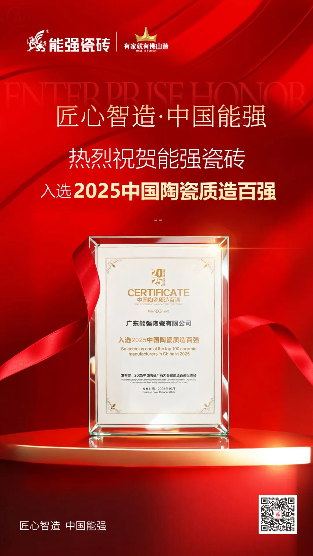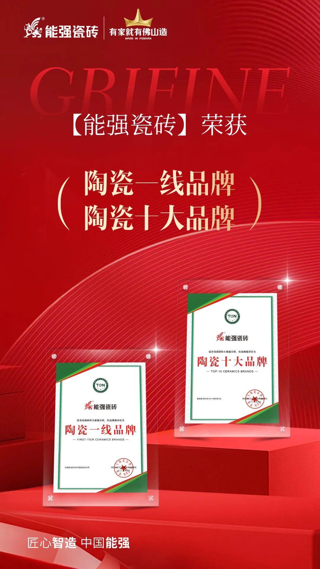 能强瓷砖不忘初心,坚持以匠心精神造好每一片砖。2025年一路斩获多项荣誉,刷新品牌硬实力名片!