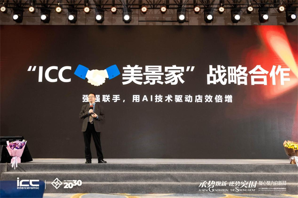 最后,ICC瓷砖岩板董事长何乾先生发表总结致辞,从战略高度为品牌发展指明方向,强调董事会将持续鼎力支持,并传递了与经销商伙伴共赴2030顶峰之约的决心。