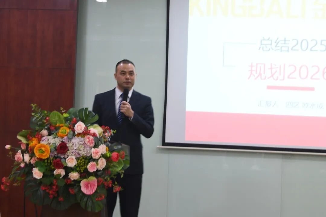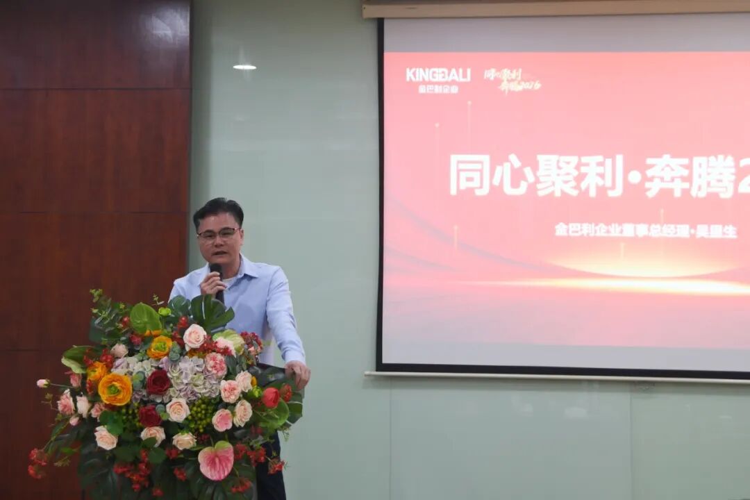 会议尾声,由企业执行董事梁董发表总结讲话。梁董首先对2025年全体员工的辛勤付出表示衷心感谢,并指出2026年,是金巴利‘奔腾’发展的关键一年,希望大家以此次会议为新起点,同心聚利、携手共进,以更坚定的信念、更务实的行动,共同书写金巴利的新篇章!”