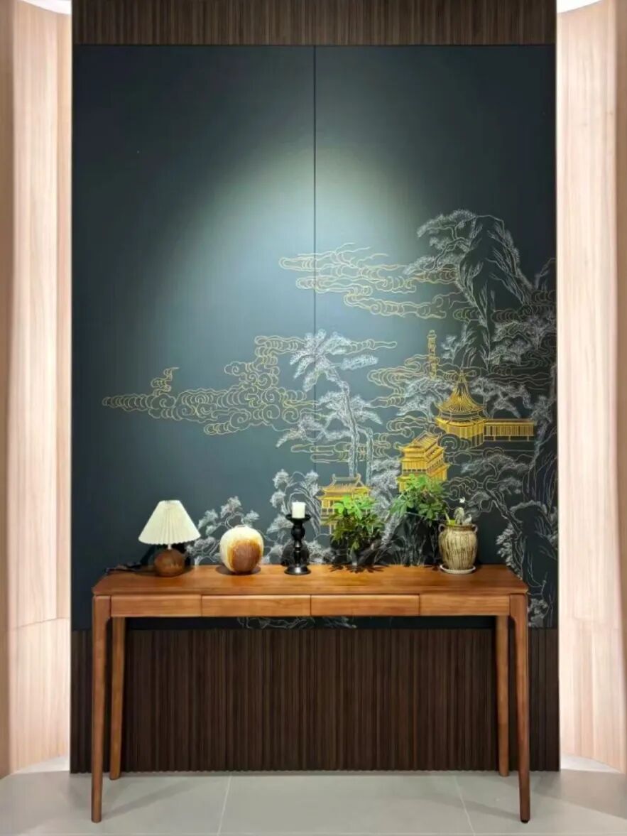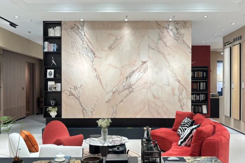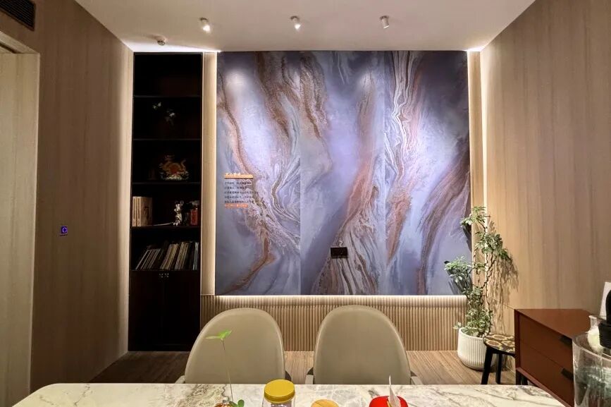 大理石纹置景墙锚定视觉中心