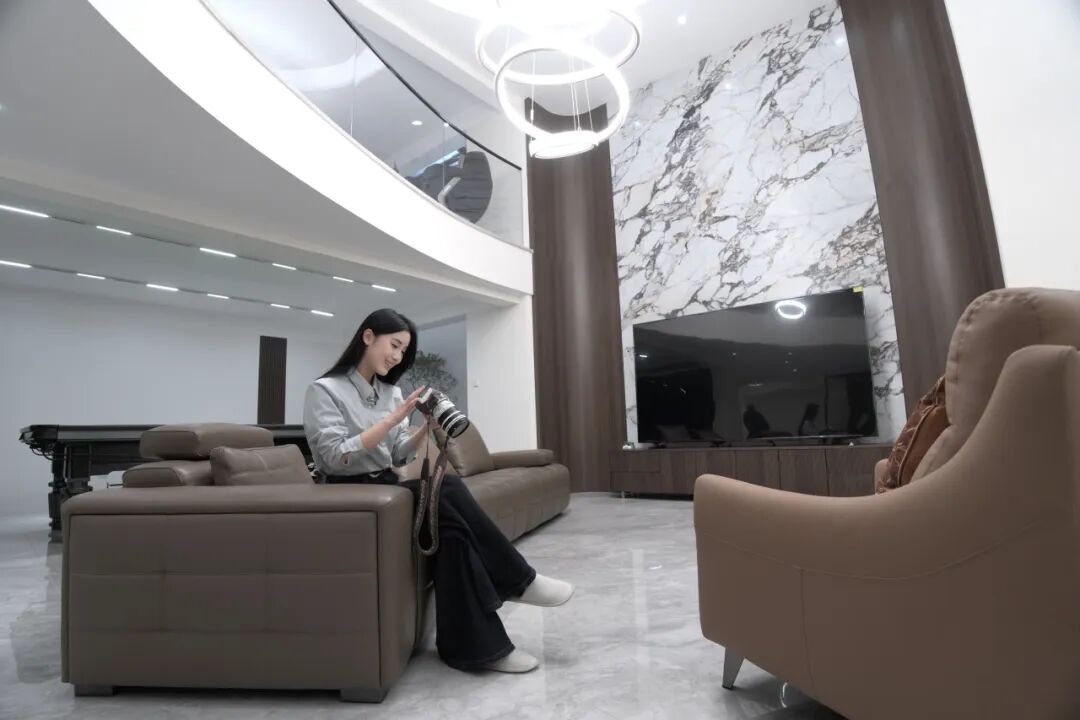 “它就像一张纯净的画布,”何亮介绍道,“这种‘自如如一’的基底效果,奠定了空间沉稳、现代的基调。无论搭配时尚现代的桌椅还是优雅古典的装饰,都能和谐相融,并更好地展现软装本身的美感。”