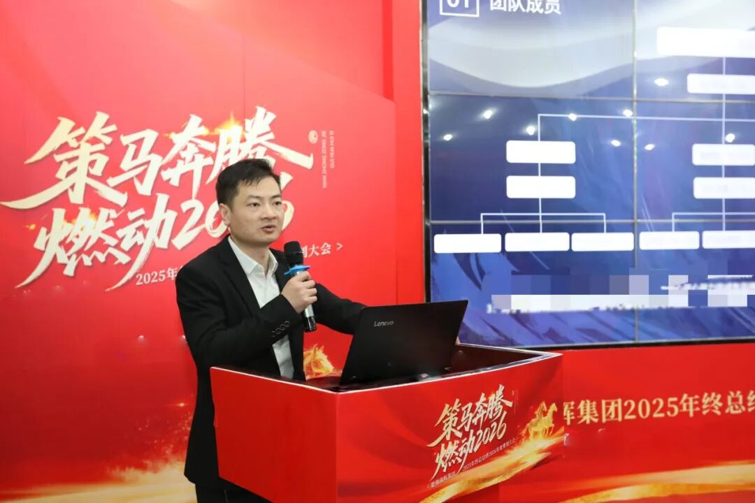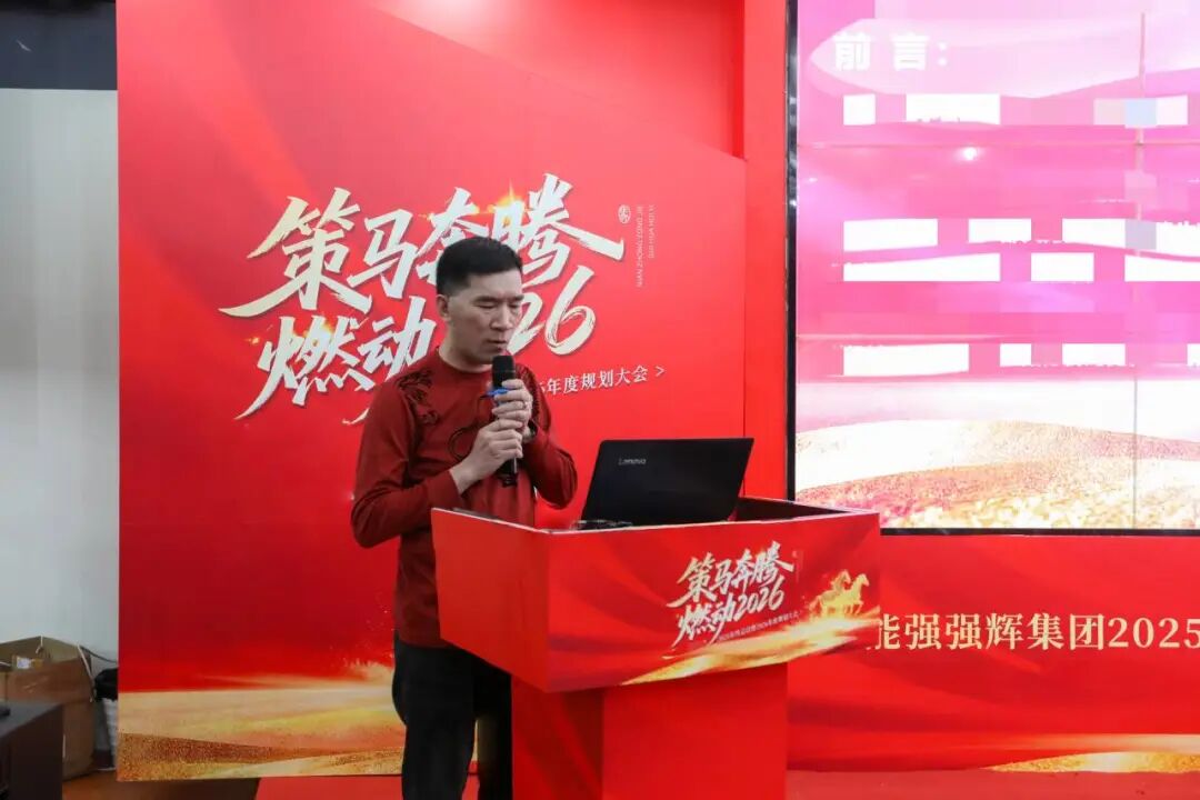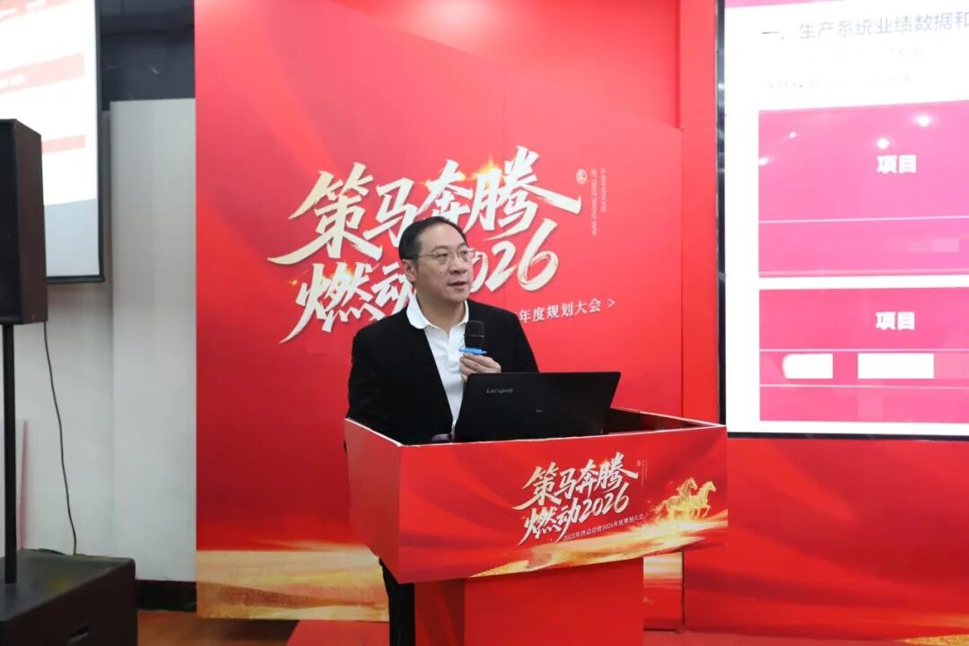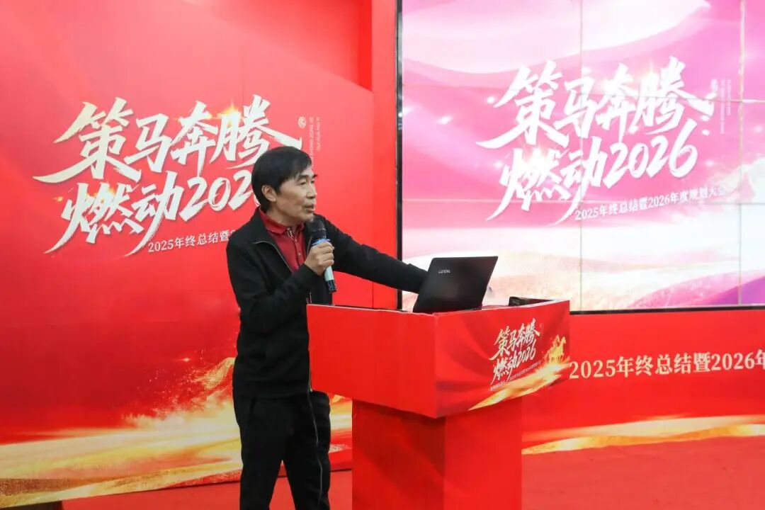 会议伊始,集团董事长梁胜远对2025年各部门工作进行全面回顾。他提到,2025年行业环境严峻,但全体同仁携手并肩、实干笃行,公司各项事业才得以稳步向前。展望2026年,希望大家沉淀过往经验,以更昂扬的姿态、更务实的作风,勇赴新征程、再攀新高峰!