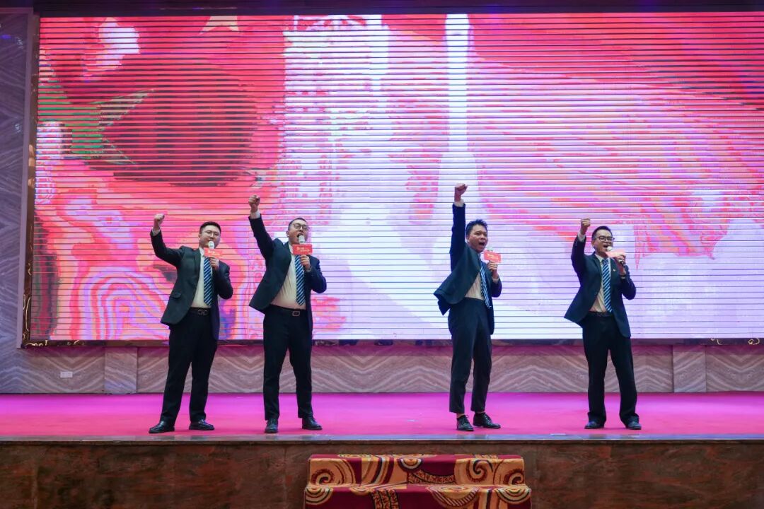 在结束一天的工作总结大会后,迎来轻松喜悦的迎新晚宴,灯光璀璨、暖意融融,晚会在一曲激昂澎湃的《旗开得胜》中正式拉开帷幕。