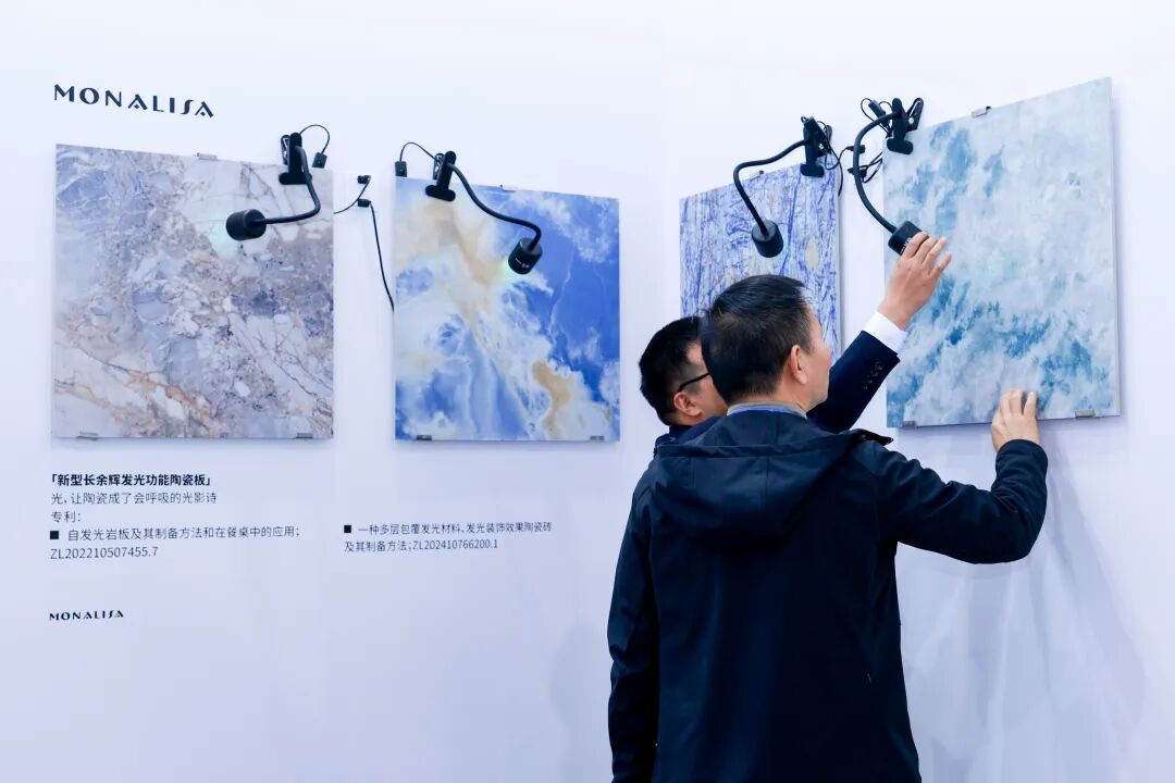 近年来,蒙娜丽莎集团不仅在陶瓷板材的性能和功能性上取得显著突破,更是研发推出了长余辉发光功能陶瓷、变色陶瓷等新型材料,提升陶瓷的科技内涵,实现从静态装饰到动态交互的跨越。
