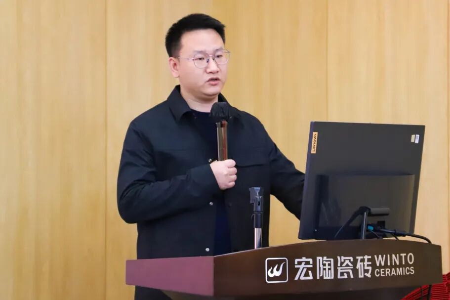 随后,总经理梁慧才作公司年度工作总结报告。他系统回顾了2025年在复杂市场环境下,宏陶所取得的战略性成果:品牌影响力持续攀升,数字化营销与渠道建设取得实质性落地,产品创新体系日臻完善,全国渠道网络纵深拓展,组织效能显著提升。