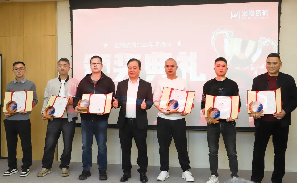 2月3日,瓷砖十大品牌宏陶瓷砖隆重召开2025年度总结会议。本次会议在全面总结过去一年发展成果的基础上,正式发布2026年战略规划与首波营销战役,系统部署新一年发展方向。总经理梁慧才、副总经理罗勇、销售副总经理庞永江、许恩杰、高美等公司管理层及全体员工共同参会,凝聚共识,共绘新章。