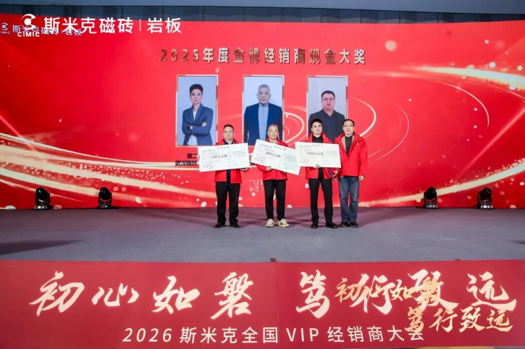 大会颁奖盛典为表彰2025年表现突出、深耕市场的经销商伙伴,对在工程、零售、产品、营销等领域表现优异、贡献突出的经销商进行了隆重表彰。斯米克各部门领导亲临现场,为获奖经销商逐一颁发奖杯与证书,肯定其过往付出的同时,鼓励大家不忘初心、再接再厉,在新一年续写佳绩。获奖经销商们纷纷表态,将倍加珍惜这份荣誉,继续与斯米克同心同向、携手并肩,共同奔赴更加辉煌的未来。