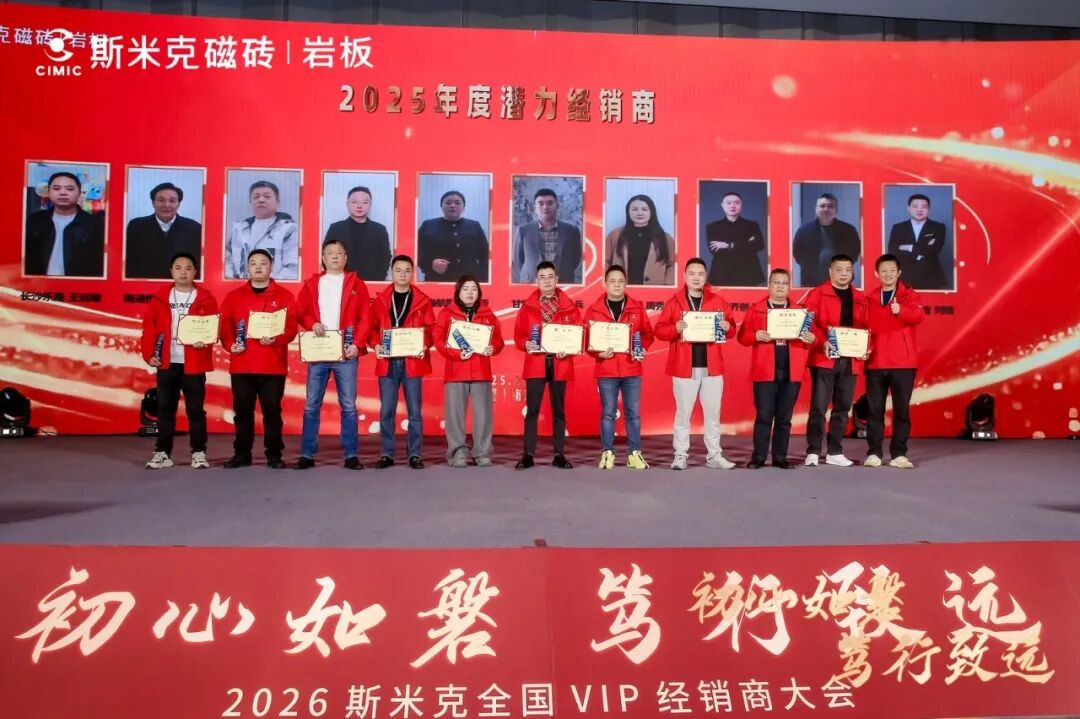 2026斯米克全国VIP经销商大会在热烈祥和、满载期许的氛围中圆满落下帷幕。本次大会的成功举办,不仅进一步深化了斯米克与全国经销商伙伴之间的信任与情谊,更畅通了沟通渠道、凝聚了发展共识,为双方后续深化合作、共赢发展筑牢了坚实根基。相信在斯米克品牌的引领下,全体经销商伙伴同心聚力、携手奋进,必将推动斯米克在新的一年续写华章、再创行业新辉煌!