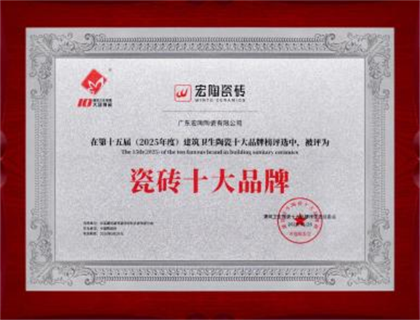 从27年前的匠心传承,到今天斩获“瓷砖十大品牌”“陶瓷一线品牌”双项殊荣,宏陶瓷砖用实力证明了一线品牌的价值所在 。它的成长轨迹清晰地表明:真正的一线品牌地位,不是靠营销炒作得来,而是建立在持续的产品创新、严苛的品质管控、深厚的研发积淀之上。