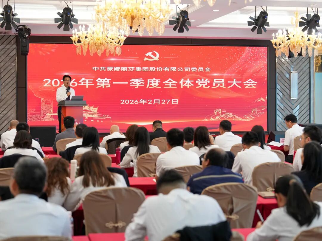 为深入学习贯彻党的二十届四中全会精神,扎实推进基层党组织建设、强化党员党性修养,2月27日下午,蒙娜丽莎集团党委召开了2026年度第一季度全体党员大会。