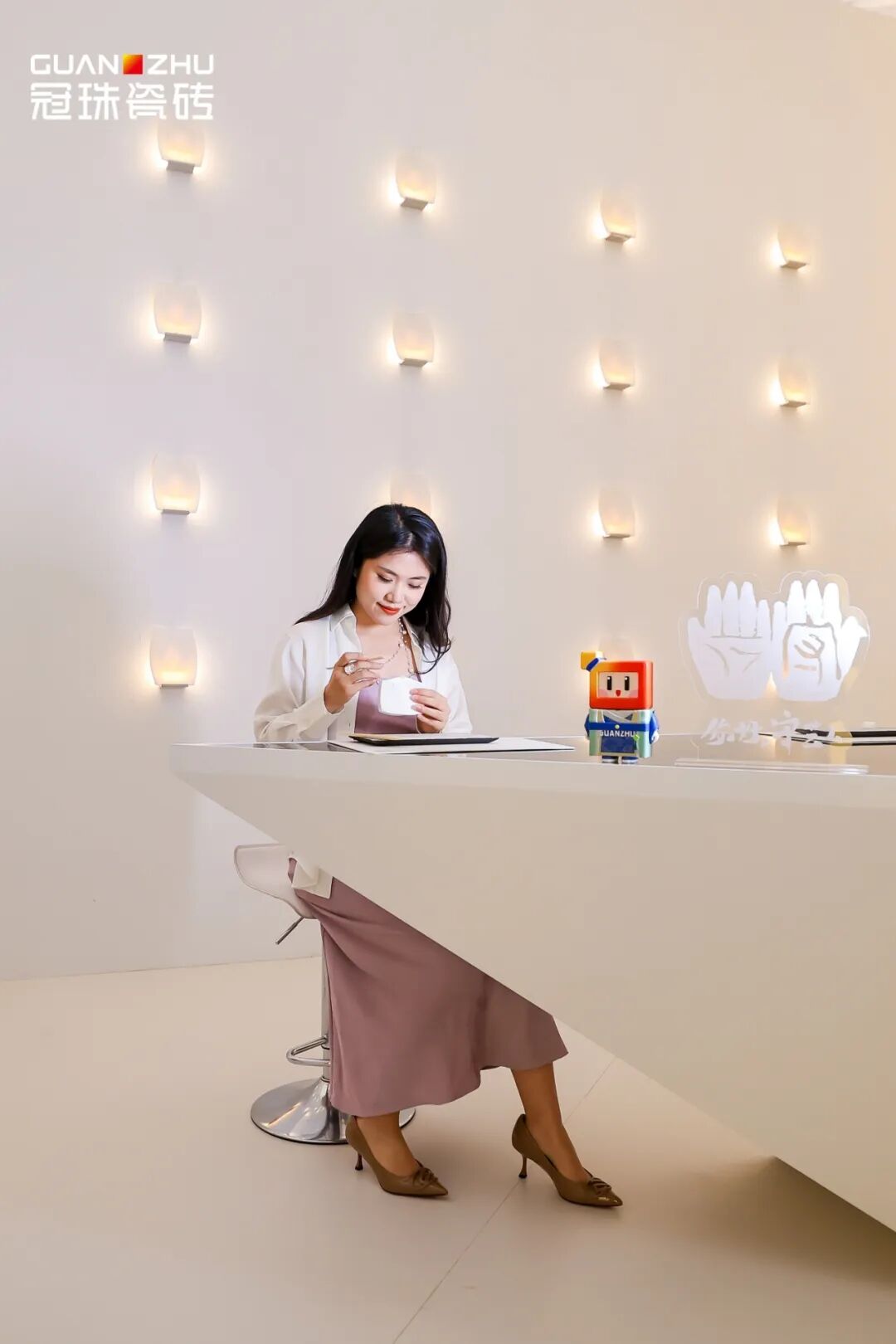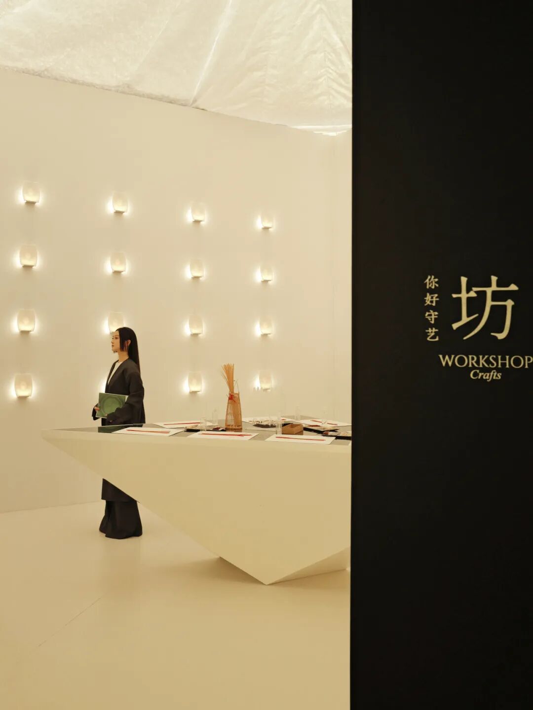 为了让这份“守艺”的体验更完整,以及更契合空间的文化气质,冠珠以魔术师岩板极地白为「你好守艺・坊」量身打造空间美学基底。产品哑面质感干净纯粹,极简底色更能凸显非遗作品的质感与韵味。同时冠珠魔术师岩板耐磨、易清洁,高度适配现场手工创作与人流参观的需求,让空间既有美感又兼具功能性。