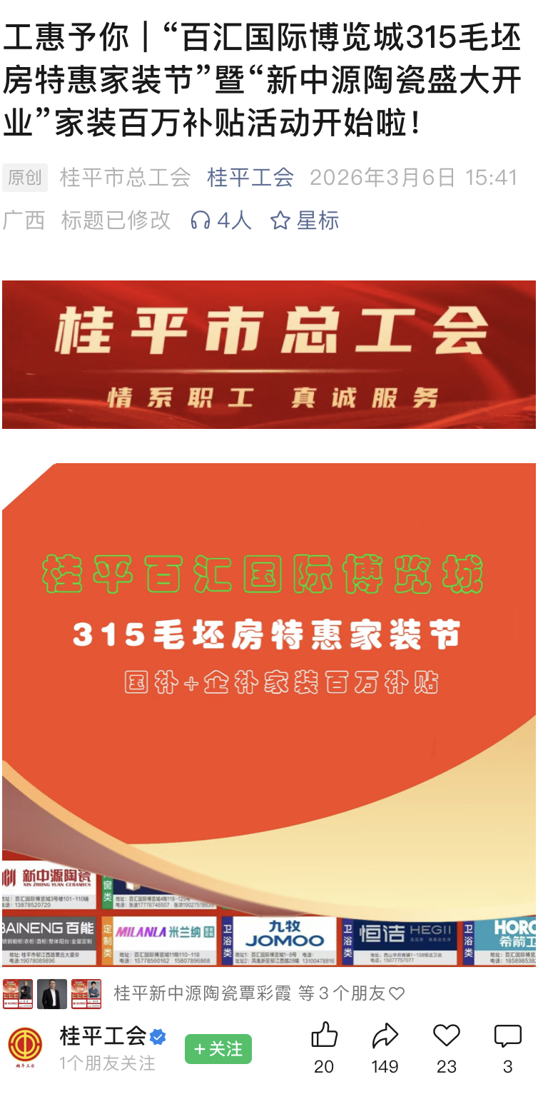 为了让开业信息覆盖全城,桂平店多措并举,织密宣传网络。一方面,深度联动桂平市总工会,依托工会平台的公信力与覆盖面,精准触达职工群体,让高品质产品走进更多家庭;