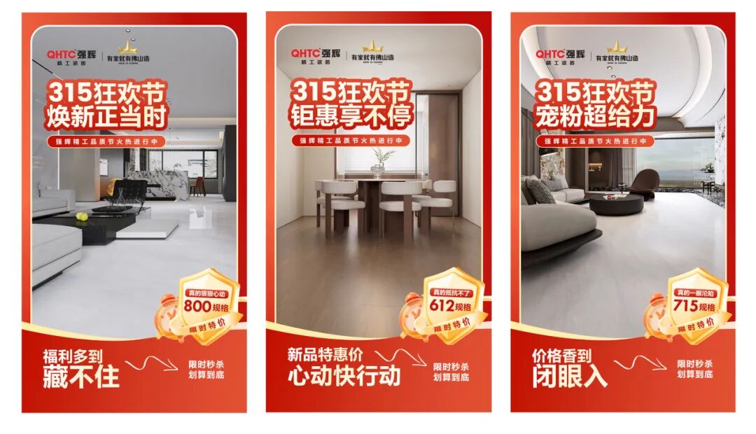活动期间,为更好地助力315精工品质节活动,强辉总部以每日直播形式进行宣传,更推出抖音专属全屋套餐、超值代金券等多重福利,实现线上线下全域营销,让广大消费者尽享多重优惠。