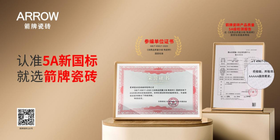 从开创品类到定义标准,箭牌瓷砖参与制定《轻纹砖》团体标准,更作为5A新国标起草单位,持续推动行业品质升级。