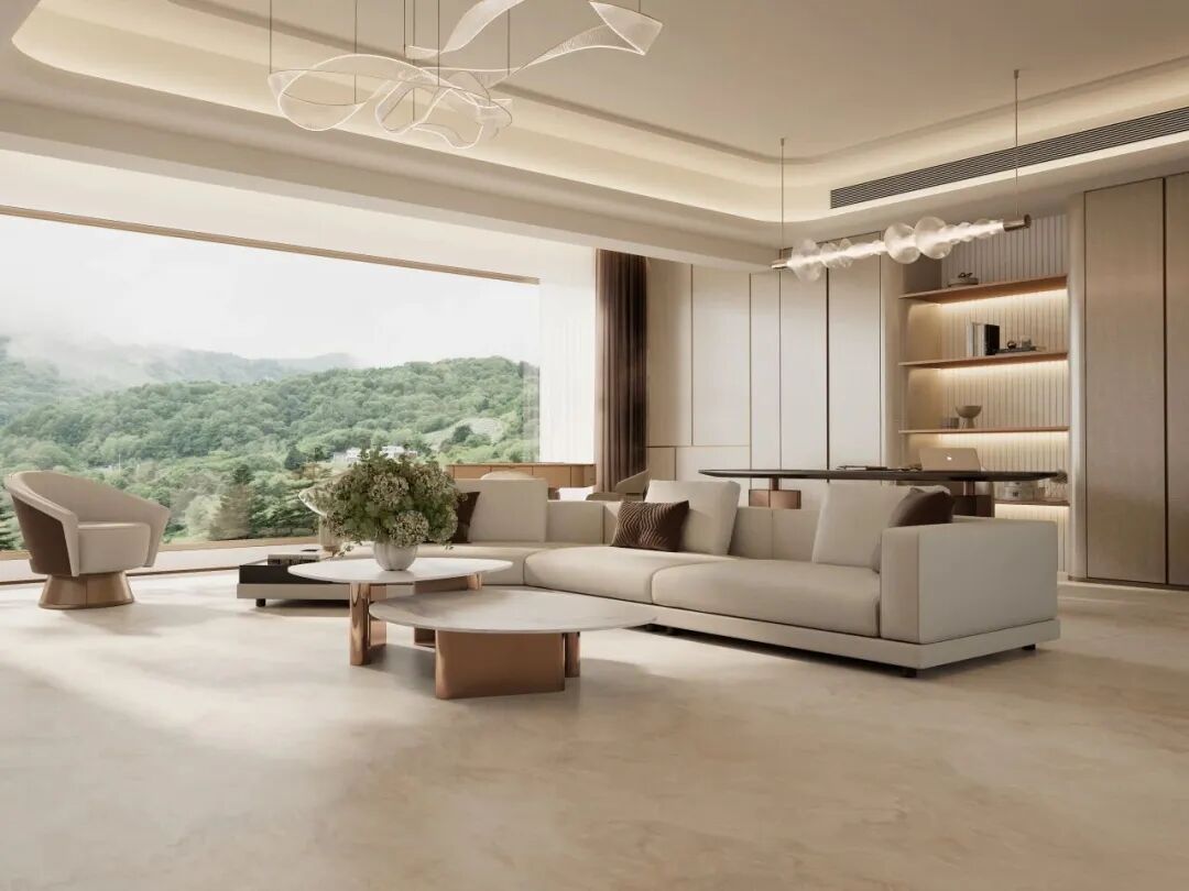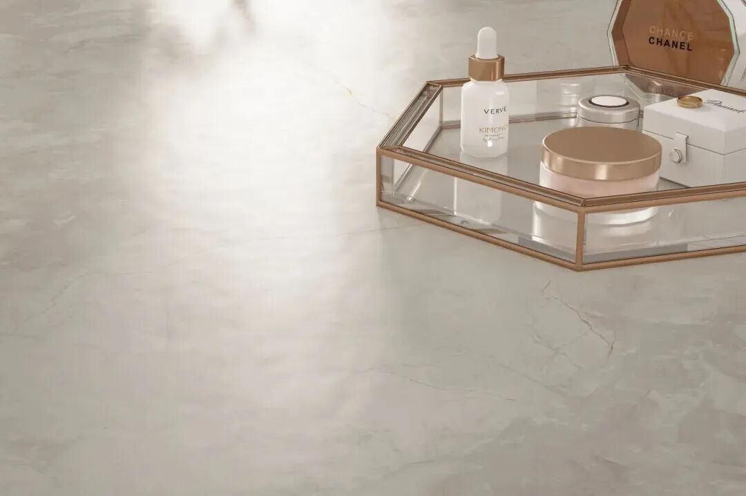 为了在瓷砖上复刻这种奢华面料的质感,开发者采用多层釉料叠加的工艺,同时在釉料中添加钾长石、氧化锌等哑光熔块,促进釉料玻璃相中析出细小晶体,将光泽度精准控制在20°至40°区间,既避免了亮光砖的光污染,又解决了哑光砖的暗沉问题。高温烧成后,瓷砖再经过多道抛光工序与柔性磨块技术处理,让砖面的细腻度进一步提升,实现如婴儿肌肤般温润亲肤的触感。