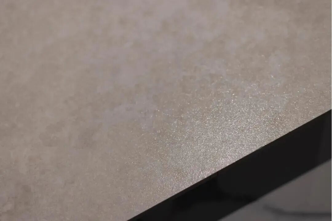 和金丝绒一样,糖果釉也会采用多层施釉技术,先施加基础釉层再叠加糖果釉层,以增强视觉效果和质感。施釉后的瓷砖经过高温烧制,晶闪颗粒在釉层中均匀分布,部分产品还会进行柔抛、半抛或微凹处理,使釉面在光照下产生柔和的闪光效果。