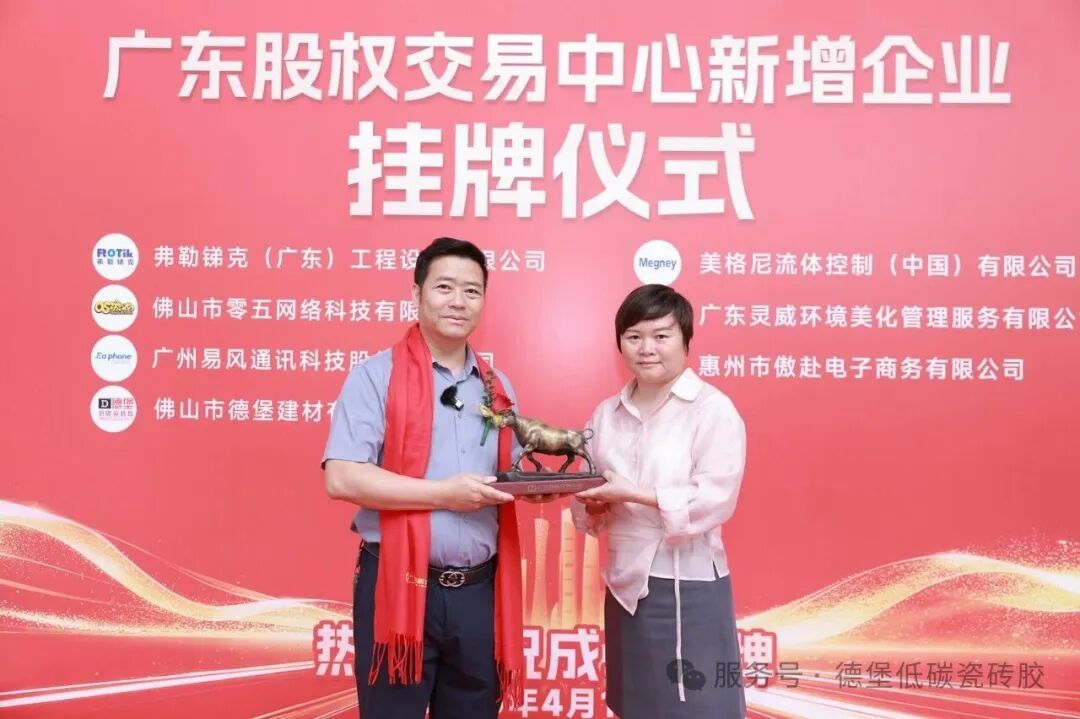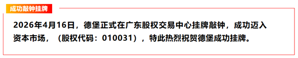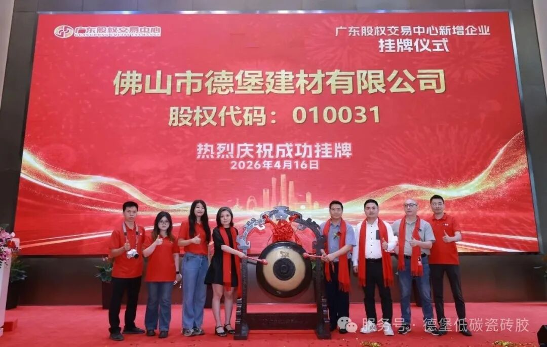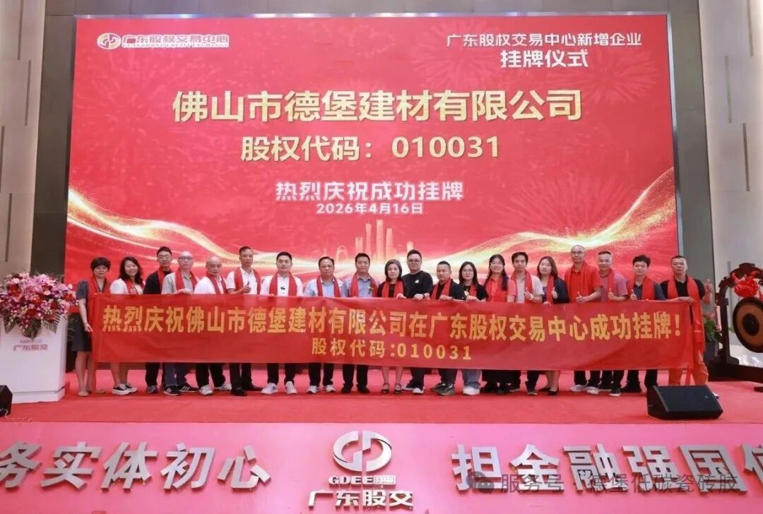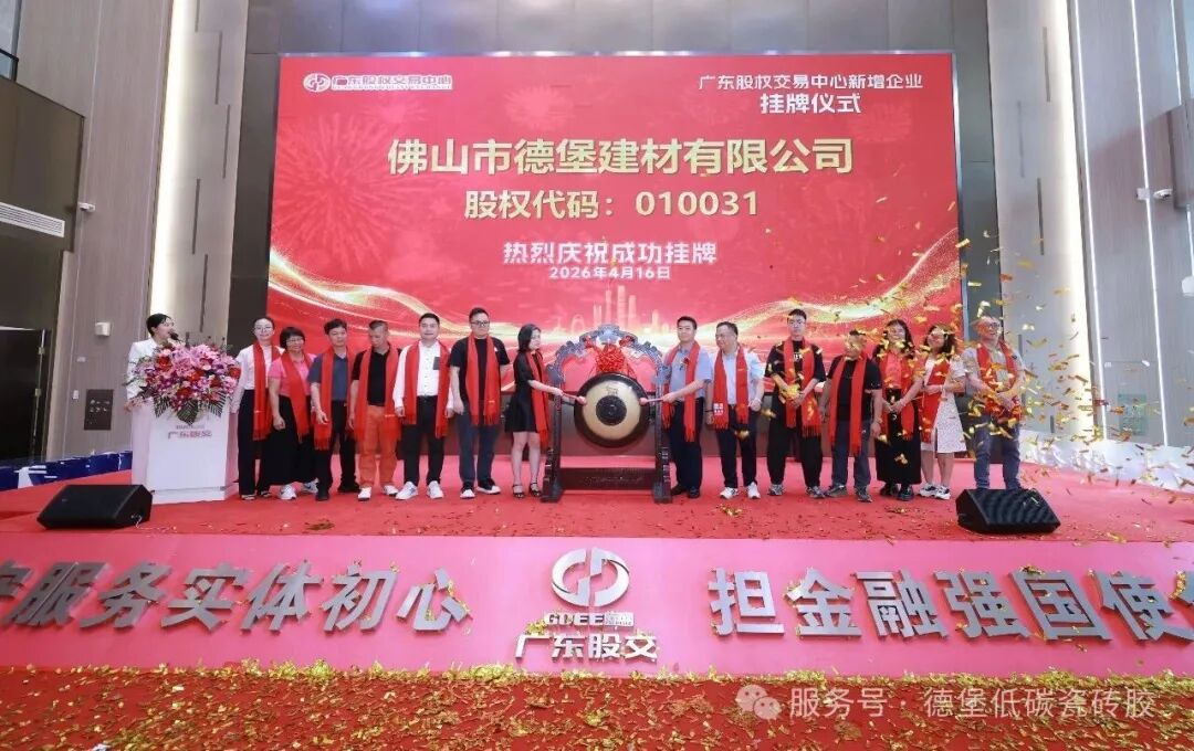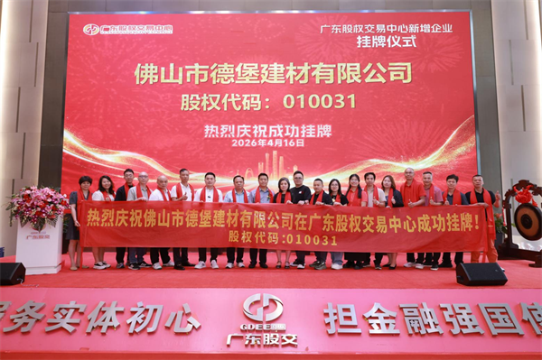 此次在广东股权交易中心成功挂牌,是德堡发展史上的重要转折点,更是企业迈向更高质量发展的新起点。挂牌后,德堡将借助资本市场的力量,进一步优化公司治理结构,提升企业规范化运营水平,加大低碳技术研发投入,扩大生产规模,拓展市场布局,持续强化品牌影响力。