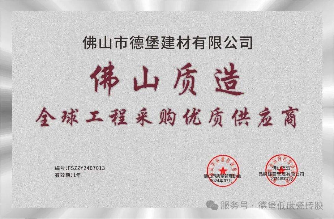 在生产实力上,德堡拥有5家自有工厂、全国63家生产交付基地,2.5万平方米全自动化无尘粉料车间和乳液车间,9条先进全自动化生产线,年产能可达30万吨,实现从原材料入库到成品出库的全流程可追溯,同时通过ISO三体系认证,构建起高效、绿色的智能制造体系,荣获“佛山质造高质量发展优秀企业”“质量品牌示范单位”等多项荣誉,用21年的坚守与沉淀,铸就了行业认可、市场信赖的品牌实力。