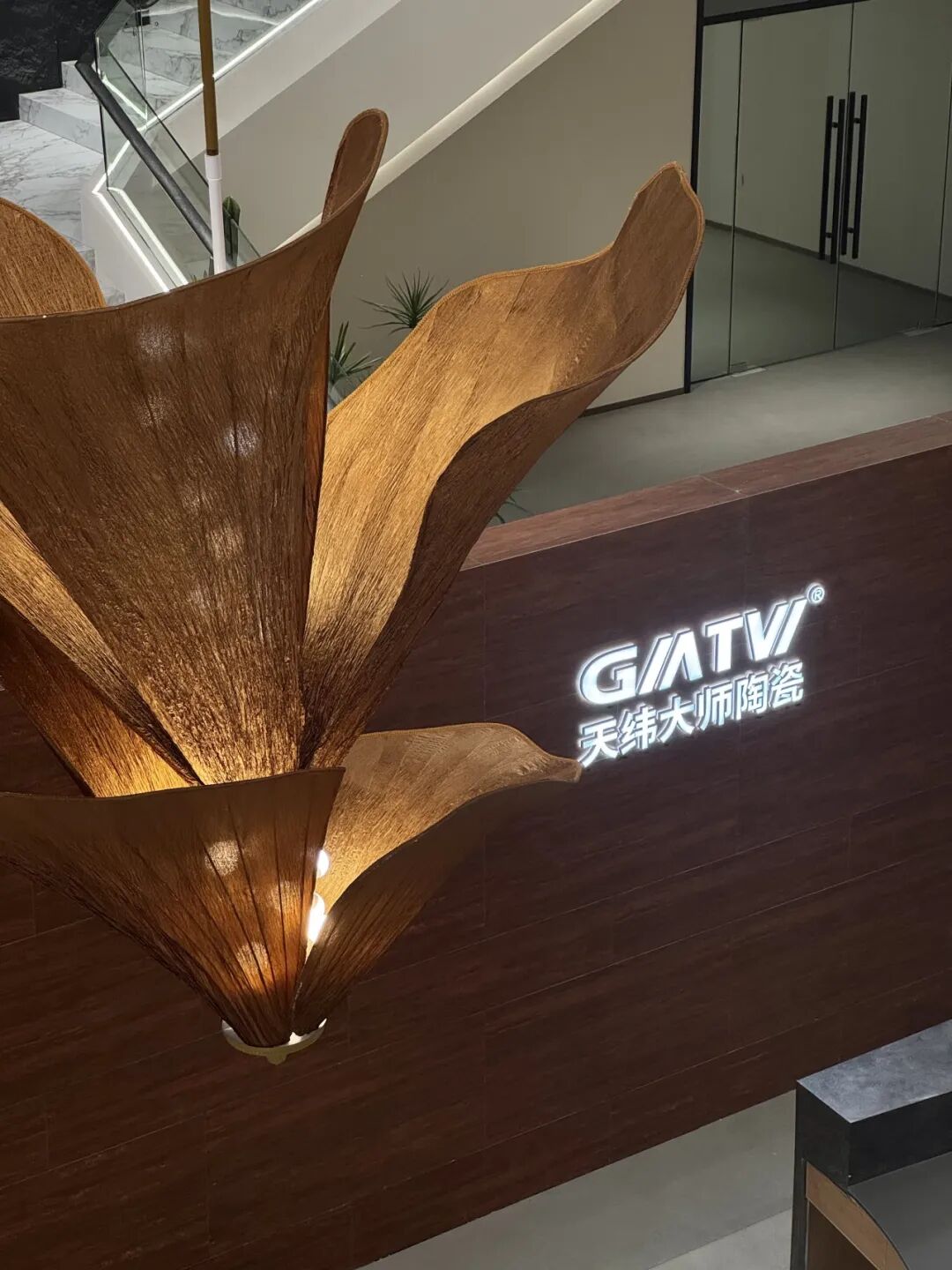 踏入天纬大师陶瓷新展厅,便被一场温柔的材质叙事包裹。挑高空间里,原木装置舒展如绽放的花瓣,将暖光揉碎洒向地面。