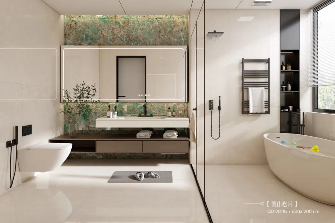 此次升级的三耐超韧白坯,甄选高纯度白岩原料,经超两倍深度提纯,白度较传统坯体提升40%,极致净白通透,为釉层铺就完美基底。它让大理石纹理的灵动、素色格调的高级感极致呈现,更从根源杜绝杂质反渗,确保瓷砖保持初见时的惊艳,让耐看成为由内而外的视觉承诺。